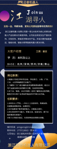 江湖寻人|迈睿机器人大客户经理招聘启示