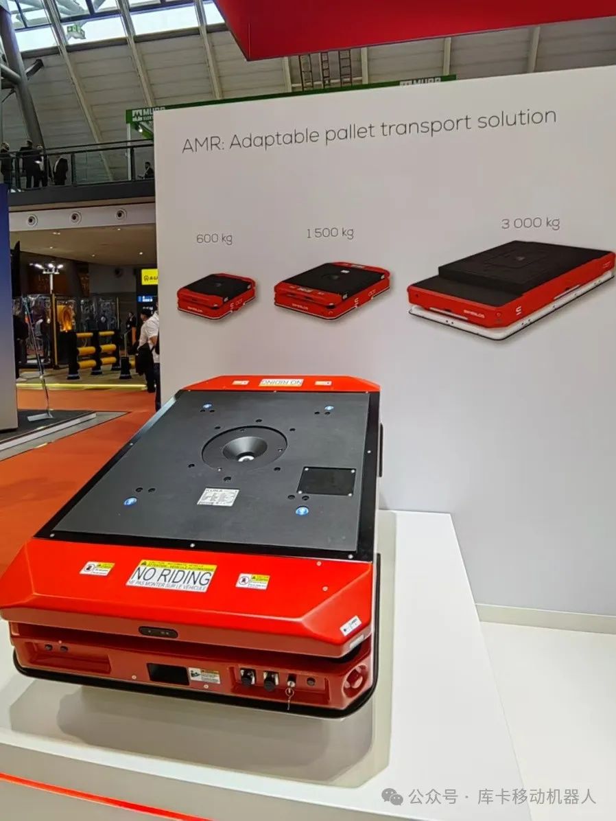 在库卡集团旗下的物流专家瑞仕格(Swisslog)展台,静态展示了瑞仕格红色定制化AMR KMP 1500P