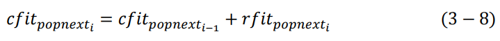 随后,遍历种群副本popcurrenti,而后生成一个0-1之间的随机数p.比较子代个体的cfit和p的值,直到cfit比p大时该个体代替popcurrenti中此位置的个体.最后将current的所有值赋给popnexti.