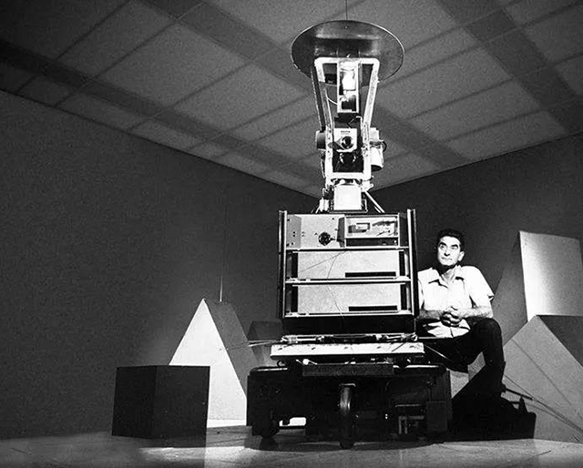早期的机器人并不具备环境感知、运动规划和控制能力,所以更接近一台“机器”,而不是“机器人”。1960年,斯坦福研究院(SRI)向公众介绍了名为Shakey的机器人,它带有视觉传感器,能根据人的指令发现并抓取积木——尽管控制它的计算机,体积足足有一个房间那么大!Shakey被认为是严格意义上的第一台移动机器人,拉开了智能机器人研发的序幕。
