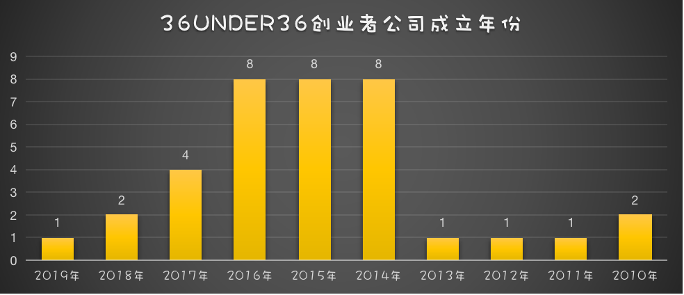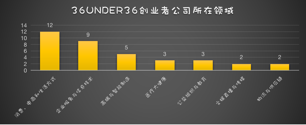 2014、2015、2016年三年间超过2/3的创业者决定成立当下的公司,那时候的双创大潮给予了这些84年以后出生的青年创业or再次创业的勇气和机遇,他们便好创业的热门领域TOP3是:消费、电商与生活方式(12家),企业服务与信息技术(9家),高端与智能制造(5家)。