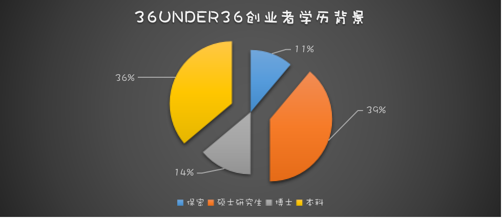 此次上榜创业者中,学历水平主要集中在硕士研究生(39%)和本科(36%)水平,其中五位创业者是拥有博士学位。其中,王仕锐同时是医联创始人、CEO和企鹅杏仁集团CEO。2006至2014年四川大学华西口腔医学院就读八年制本硕博连读;森亿智能创始人兼CEO张少典,是美国哥伦比亚大学医学信息学专业博士、高级工程师。同样拥有博士学位的,还有曾就读于日本东京大学智能交通专业的江天、普林斯顿大学电子工程专业的汪冠春,和香港中文大学机械与自动化工程专业的李陆洋。