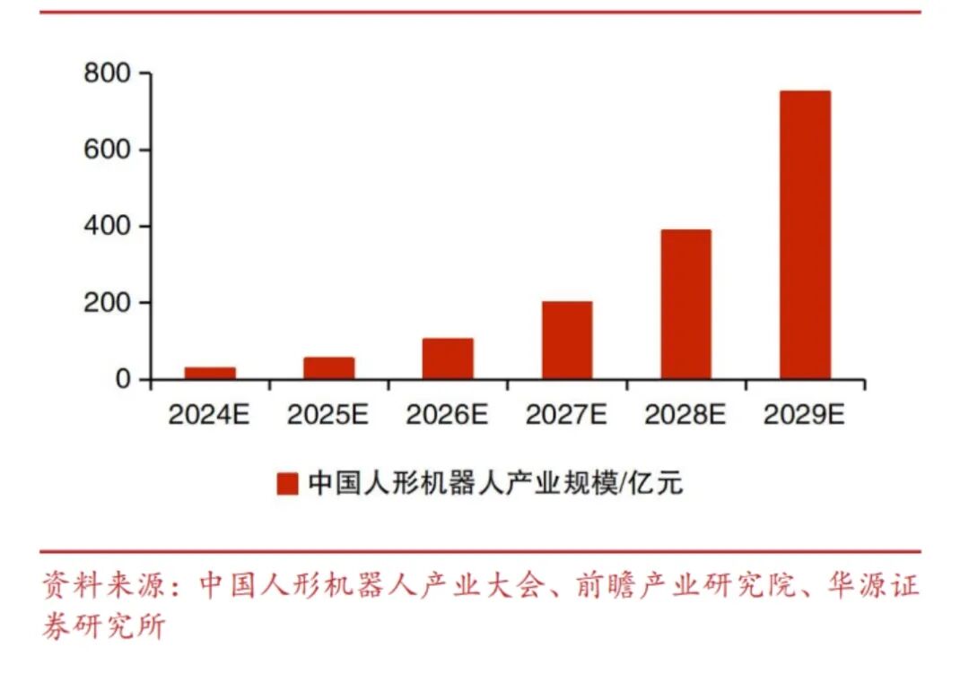 上游是决定性能上限的核心零部件(如执行器、减速器、传感器),中游为本体制造,下游则涵盖工业、医疗、服务等几乎一切实体经济场景,商业化想象空间巨大。据前瞻产业研究院数据显示,预计到2029年,中国人形机器人市场规模有望从2024年的27.6亿元增长至750亿元。