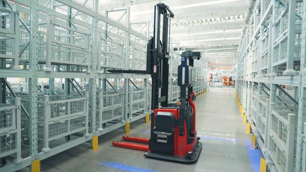 以VNL14托盘堆高式无人叉车为例,基于3D激光定位,VNL14托盘堆高式无人叉车感知定位精度高,无需反光板,可适配多种规格载具;额定载重能力为1.4T,货叉举升高度为2924mm,最小直角堆垛通道宽度为2700mm,再配置360°安全防护,在工厂仓储间作业高效更安全。