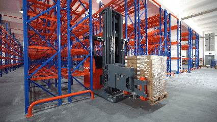 MC12的核心优势在于其独特的三向叉设计,其货叉可左右侧移和180°转向。这一革新直接将通道面积压缩至传统方案的一半以下,让客户的仓库得以增设更多货架,存储库位量实现超过50%的显著提升,在有限的物理空间内创造了无限的存储可能。