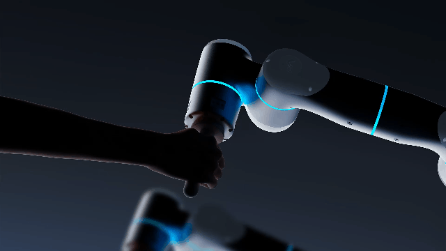 非夕此次重点展示的自适应机器人遥操作系统由主从机械臂构成,操作者通过主机械臂即可实时控制从属机械臂的动作,并获得精准的双向力觉反馈。