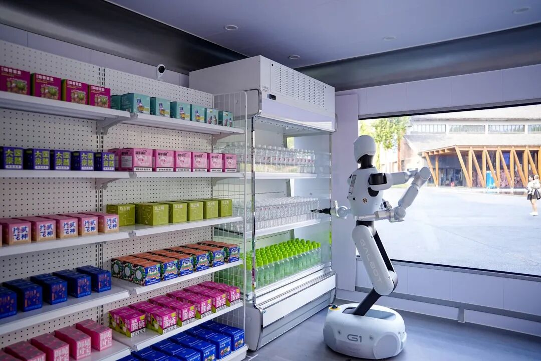银河太空舱是银河通用为城市生活量身打造的人形机器人智慧零售解决方案,由银河通用自研的机器人 Galbot 运营,可完成多语言语音接待、下单支付、精准抓取与商品取送,实现“全程无遥操、自主化服务”。每一台太空舱最小仅需 16 平方米空间,却可全天候自主运营,售卖饮品、小食、文创、药品等高频消费品类,与景德镇陶瓷文创实现完美融合。