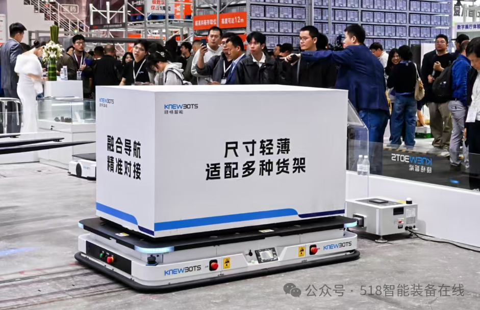 另一款重磅产品2吨潜伏式AMR,则展现了“小身材大能量”的特质。张棪指着这款仅320毫米高的设备介绍:“它的长度1.7米、宽度1.2米,却能负载2吨货物,这得益于我们优化的机械结构设计——搭载自研双差速全向舵轮后,它能实现前进、后退、横移、弧线等多种运动轨迹,在狭窄的车间通道中也能灵活转向。”