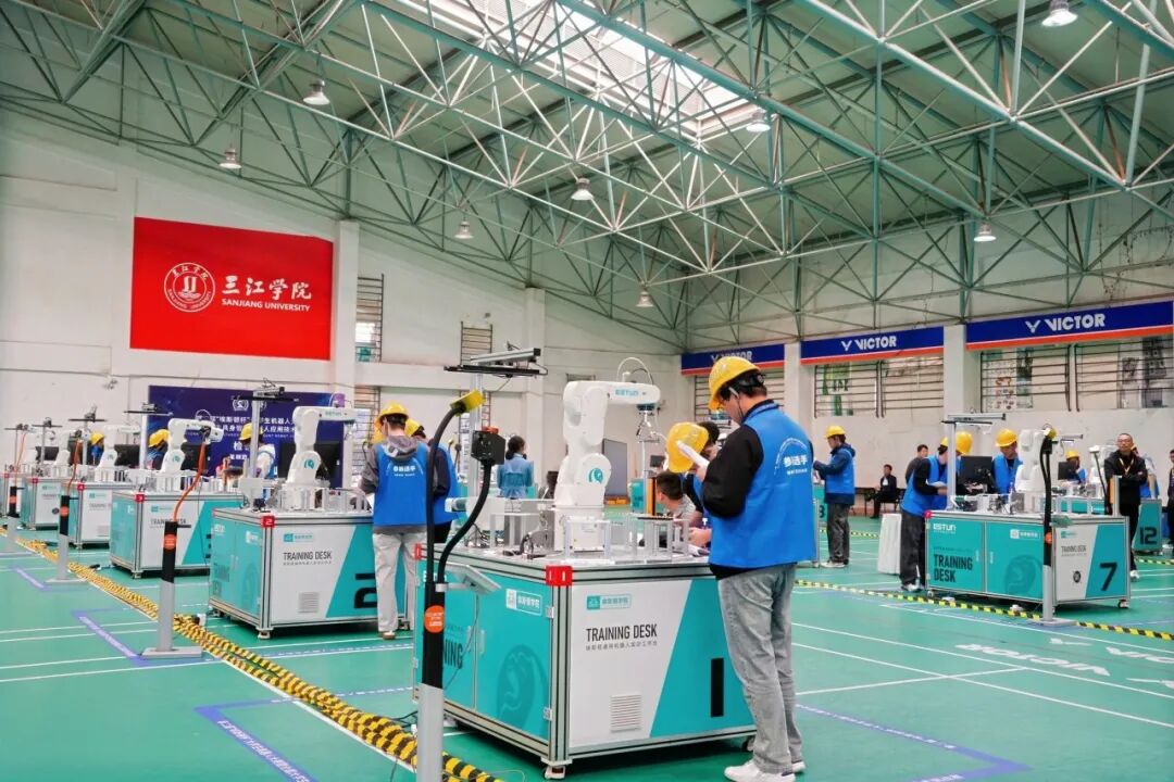 大赛以“智能制造,驱动未来”为主题,设置创新赛道与应用赛道,聚焦人形机器人、复合机器人、协作机器人及工业机器人等前沿方向,全面考察学生在语义识别、视觉抓取、焊接、打磨等复杂场景中的技术应用与工程实践能力。赛事通过创新+实践相结合的考核模式,推动“以赛促教、以赛促学、以赛促创”的深度融合,为智能制造与机器人领域的高素质人才培养搭建了高水平实战平台。