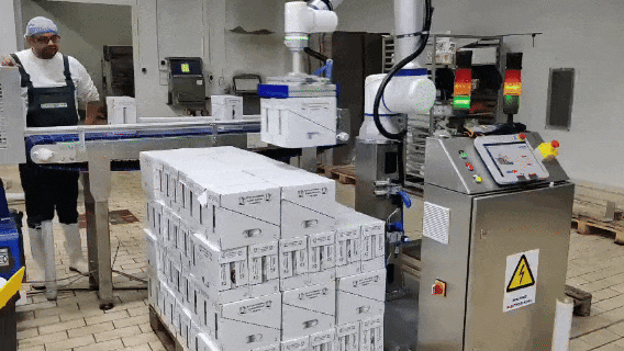 客户为希腊某龙头乳制品企业,日产能超10000箱,覆盖常温奶、酸奶、奶酪等多条生产线。因生产车间属于低温、高湿度环境,艾利特机器人为其提供了食品级不锈钢码垛工作站,实现了优于以往机型的卫生和动作性能,具有极佳的耐腐蚀性,便于客户清洁。