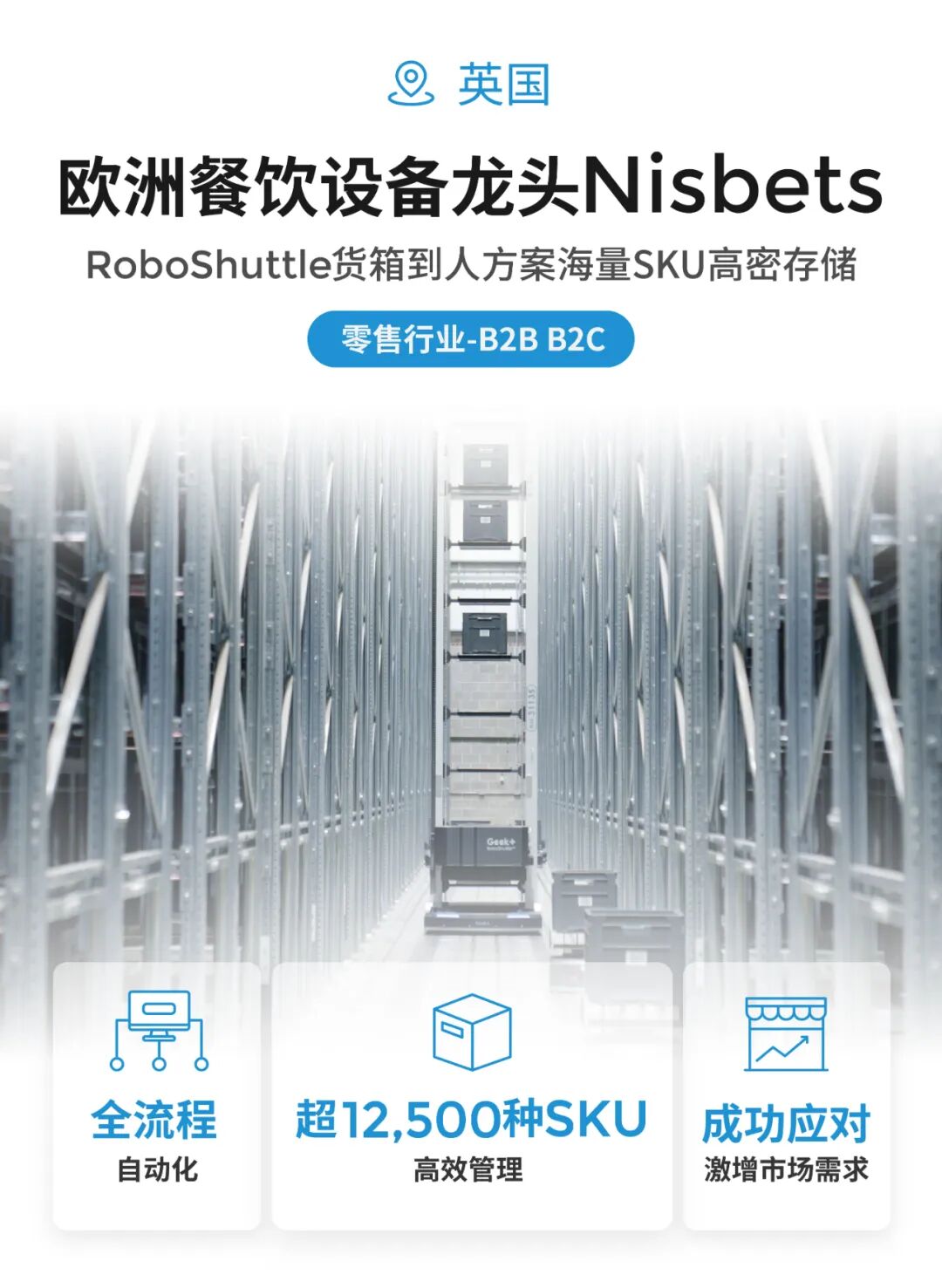 在英国,为欧洲餐饮设备龙头Nisbets打造英国智能仓储中心,引入190台自主移动机器人实现从入库到出库全流程自动化,高效管理超12,500种SKU,显著提升仓储运营效率、灵活性和订单处理能力,有效应对激增的市场需求,为全球餐饮设备行业树立新标杆。