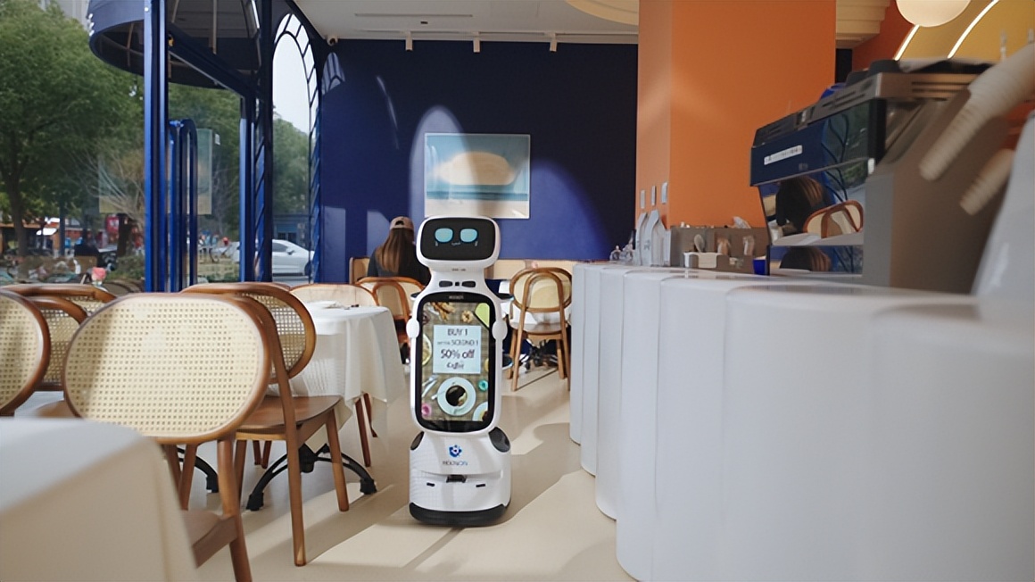 迎领机器人:可以在餐厅门口进行招揽、引领顾客到指定位置,同时播放广告。