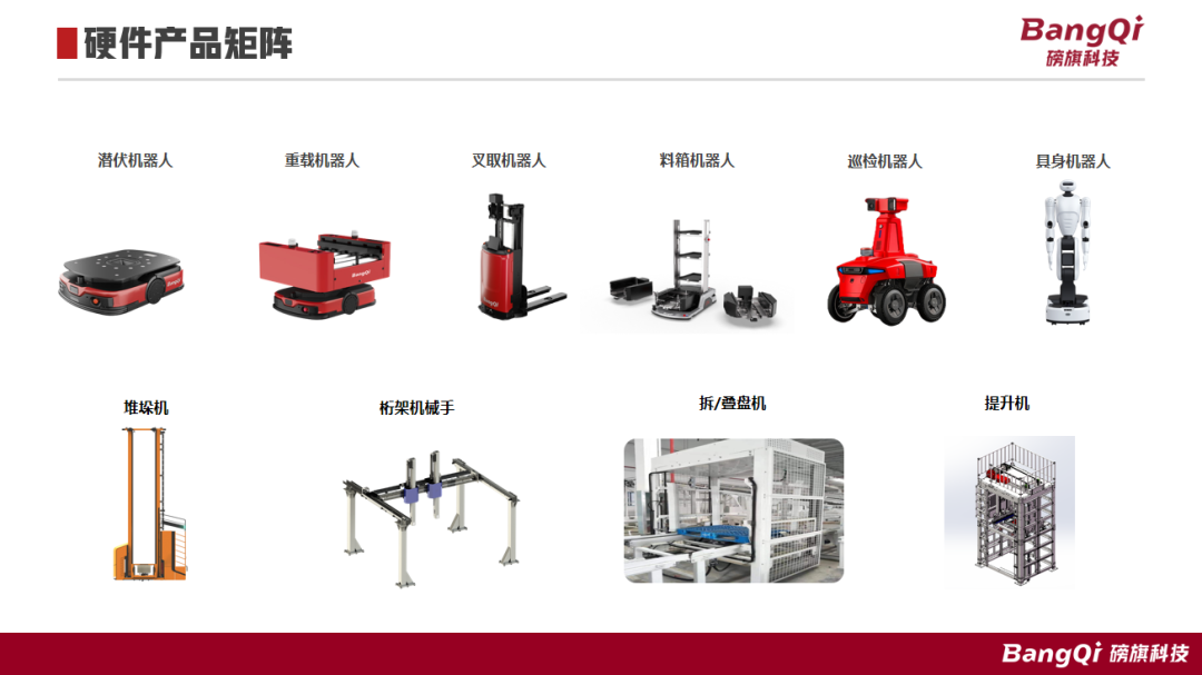 为满足电池制造多场景、高精度的作业需求,磅旗科技打造了智能机器人集群,形成从基础搬运到重载作业的全覆盖能力。