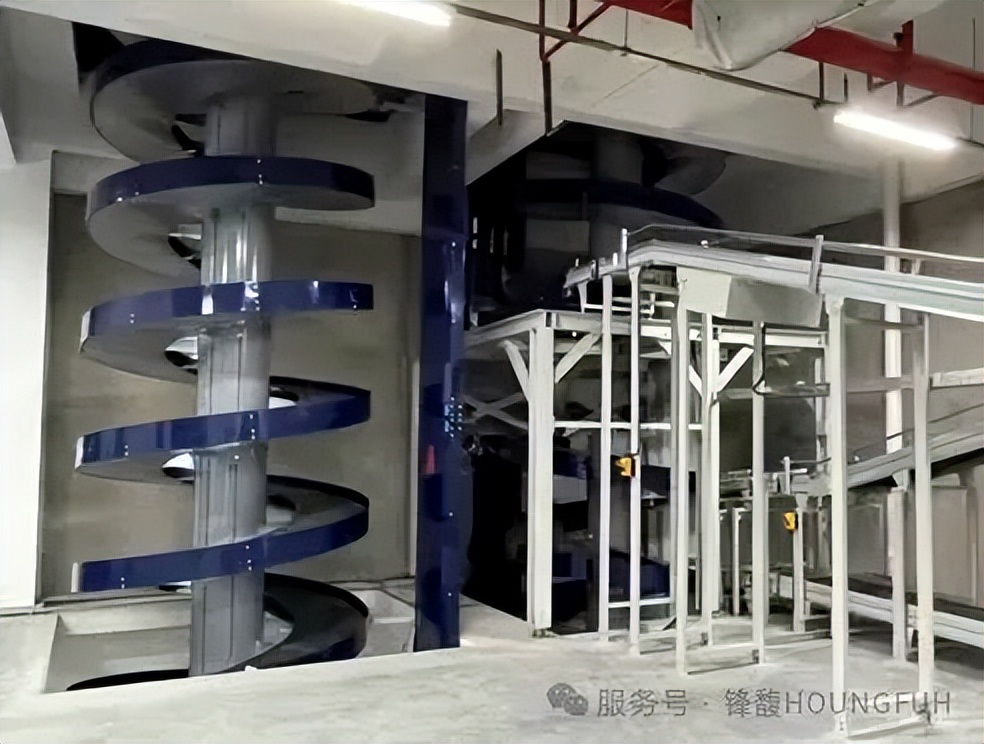 以螺旋输送机替代传统方案,解决多楼层输送难题,同时优化空间布局,将分拣中心竖向布局改为横向,多出2个滑道的同时节省60%空间。