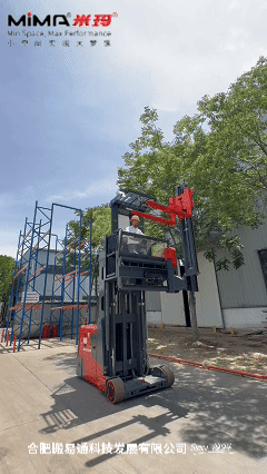 MCC16额定载荷1.6吨,标准起升高度可达14.2米,定制高度可达18.5米,配备 180° 旋转货叉与左右侧移功能,在仅1.65米的超窄通道内无需转弯即可灵活叉取货物,大幅提升仓储空间利用率与作业效率。