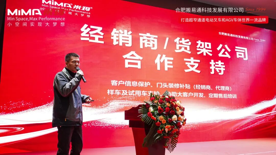 合肥搬易通(MiMA)国内销售副总任飞在讲话中表示,西安营销服务中心可不是简单的 “销售点”,而是集销售与服务于一体的 “综合服务站”!在这里,西安及周边企业能享受到从产品规划、定制化物料搬运方案,到售后运维的全链条服务 —— 不管是复杂的仓储场景,还是特殊的搬运需求,MiMA 米玛都能靠技术实力搞定。