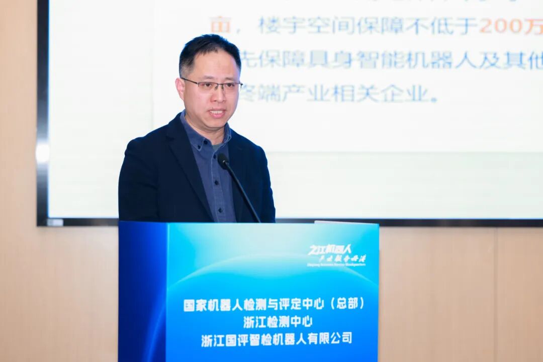 中共西湖区委副书记、西湖区区长周扬在致辞中强调,浙江检测中心的启用对建设先进制造业集群具有里程碑意义。周扬区长特别感谢了各级领导及上电科、上研院、云创集团、五八智能等合作方,并指出,作为母港“1+3+1”生态体系的重要驱动平台,浙江检测中心将充分发挥平台枢纽作用,通过将西湖区的科创优势转化为服务机器人产业发展的关键支撑,助力区域产业生态构建与高质量发展。