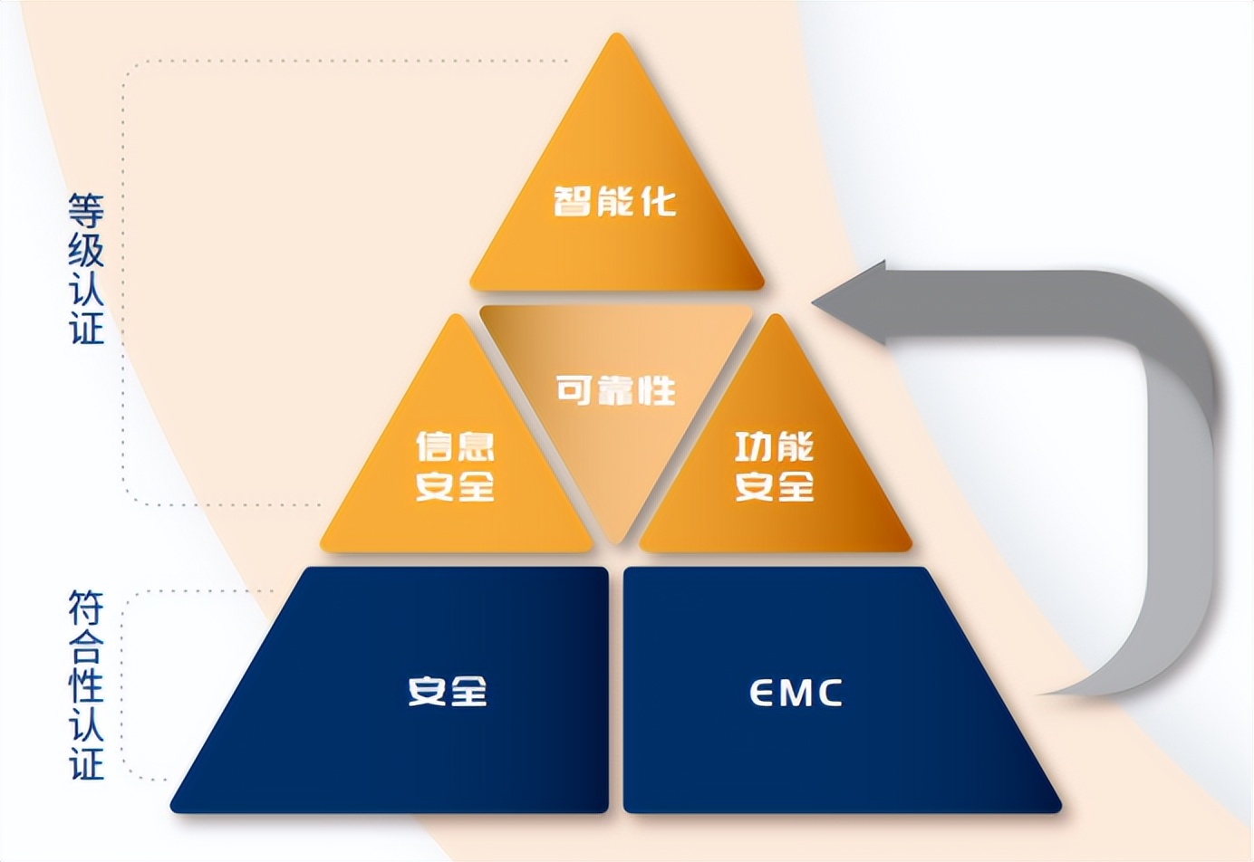 CR认证采用符合性认证与等级认证相结合的综合技术架构。安全和电磁兼容性作为国际通行质量底线,采用符合性认证的方式;结合可靠性、信息安全、功能安全和智能化四大高阶质量要素,建立L1~L5的技术发展型指标等级,采用企业自我选择、场景需求为牵引进行等级认证。
