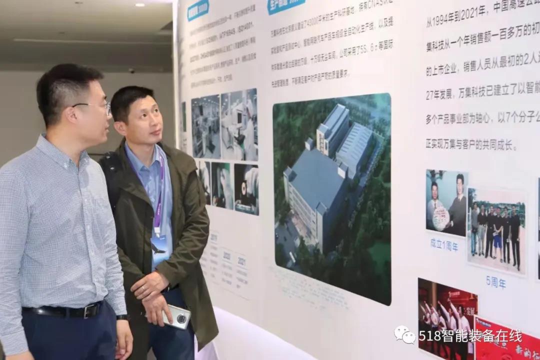 激光产品事业部总助王建胜(左)向记者介绍万集科技发展历史