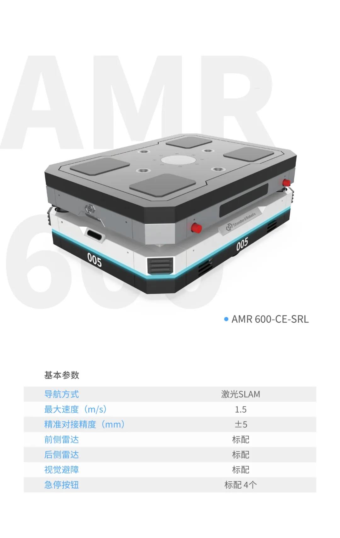 AMR 600-CE-SRL是斯坦德机器人专门针对海外市场研发的一款工业级自主移动机器人,额定负载600kg,搭载顶升背负模块,采用自研高精度激光SLAM导航方式;配备双激光雷达,提供360°安全扫描;深度摄像机实现立体环境感知,辅助双雷达实现更丰富更稳定的避障检测,提升安全性能;而边角接近检测传感器进行边角检测,实现环境检测零盲区。在复杂环境下,可智能避障绕障,保持极高的安全性能,对自身安全和人员及环境安全形成保护。