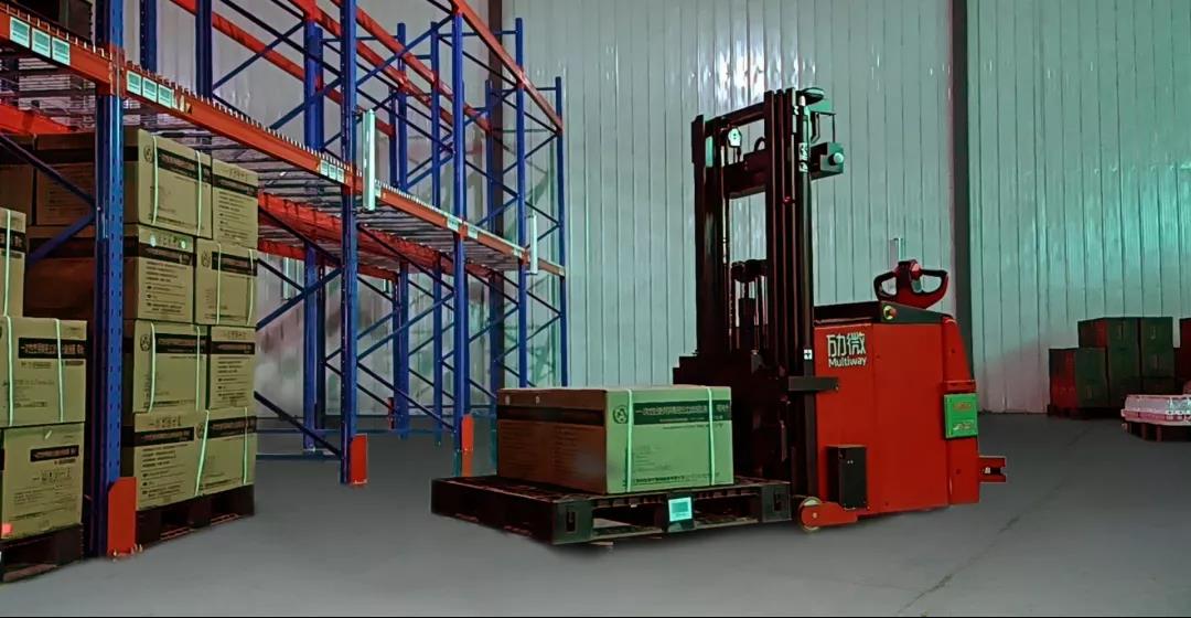 该食品企业仓库主要依赖于人工作业,作业空间小,取放货慢,需将成品搬运至立库对接站点,输送线和升降机对接精度要求高,人员三班倒,重复性人工作业人工作业劳动强度大。对此,劢微机器人根据现场实际情况,选用平衡重式无人叉车,实现精准、高效、无人化搬运作业;同时采用自动充电和手动换电池并举模式,很好的解决淡旺季搬运效率问题。