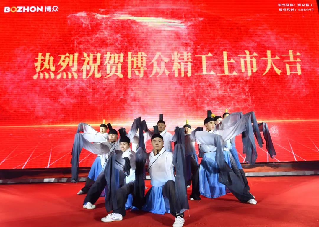 苏州市委副书记、市长李亚平,苏州市副市长王飏,吴江区委书记、吴江开发区党工委书记李铭,博众精工董事长吕绍林等共同敲响开市铜锣。