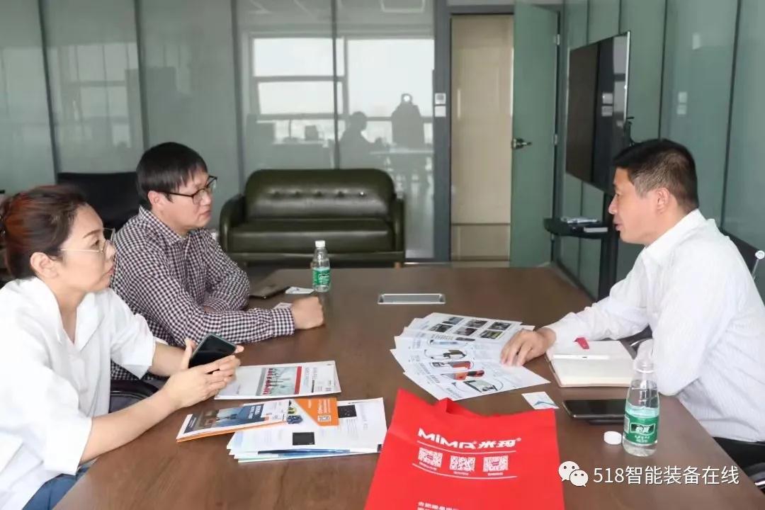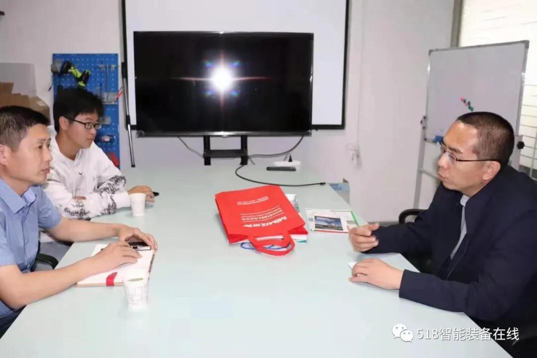 518智能装备在线与中科神威总经理庄伟(左二)、创始人李迎新(左一)交流中