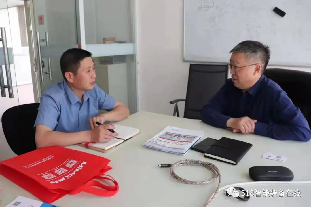 518智能装备在线记者同阿备默总经理李广云(右)交流中