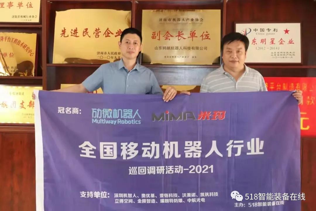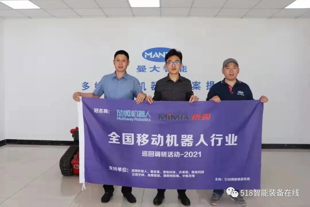 为了全面了解中国移动机器人产业发展现状,推广优秀的企业和产品,聚焦行业解决方案,本着传播行业正能量,为产业健康快速发展提供第一手的真实信息。由劢微机器人、搬易通(MiMA米玛)联合冠名赞助、518智能装备在线组织的第三期全国机器人巡回调研活动调研在河北沃美诺启动,随后,调研团队走进山东的济南、淄博、平度、蓬莱、招远、青岛等地。陆续走访了曼大智能、鸥帆、淄博火炬、海麟重工、蓬翔、金源宇科、山东柳工等产业链企业,与相关负责人进行了深入交流,详细了解企业运营情况、发展规划和实际需求。