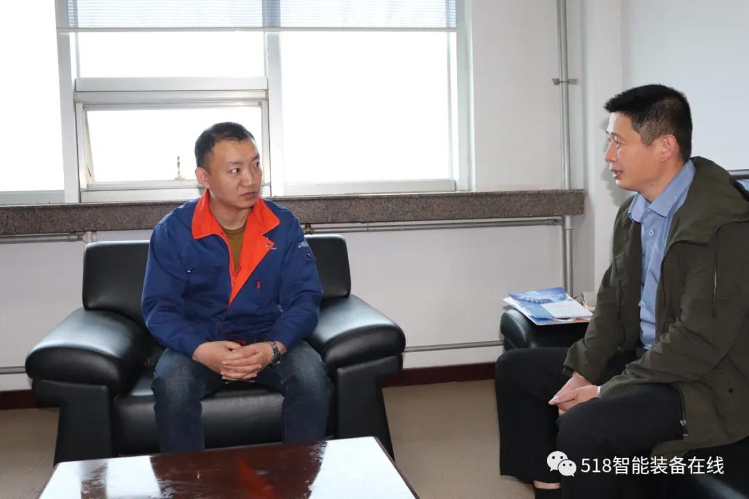 518智能装备在线记者和蓬翔副总经理朱广岗(左)交流中