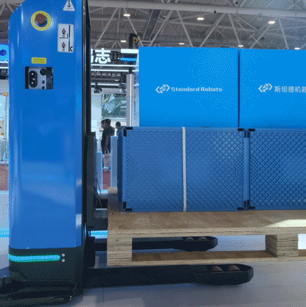 斯坦德机器人将两款公司近期的爆款产品带到了展会现场,其中一款是用于仓库和车间之间搬运的智能叉车,采用激光SLAM导航自主搬运,无需人工驾驶,小巧灵活,适用于各种窄通道环境。