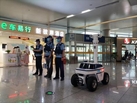在机场出发大厅,机器人完成日常巡逻和维持秩序工作,提醒旅客安全注意事项,在巡逻过程中实时检测周边环境,机器人可以原地转弯,发现重点人员、异常跑动、争吵打架等行为会进行语音制止并上报到后台。烟台公安通过部署5G警用巡逻机器人,有力推动了巡防智慧化、巡防力量多元化和出警查处精准化建设,动态应对各类突发事件,密织了一张全天候、全时段、全方位的巡逻防控网络。