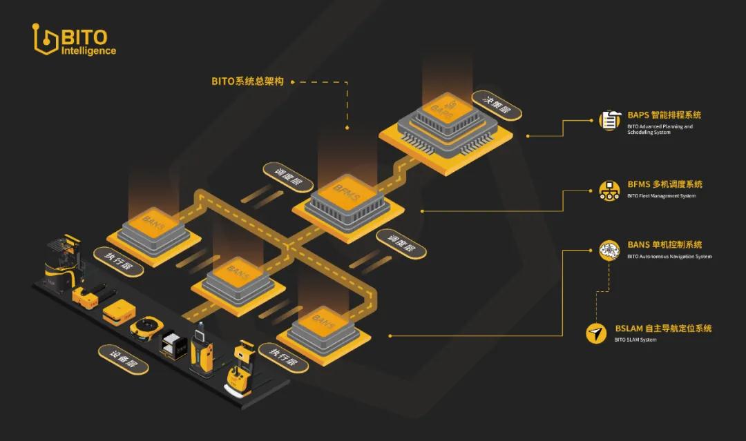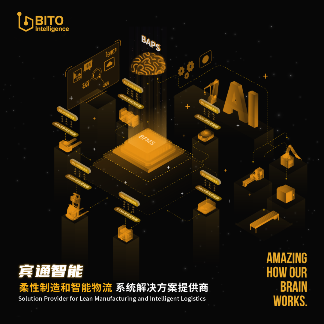 基于此,宾通智能形成了从决策层到调度层再到执行层的完整产品体系,即实时排产产品“刘邦”(BAPS智能排程系统)、多机调度产品“韩信”(BFMS多机调度系统)、单机控制产品“愚公”(BANS单机控制系统)和通用型移动机器人导航定位系统(BSLAM自主导航定位系统)。