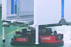 同时,海康机器人也帮助生产环节的各类辅材的送线,包括玻璃,胶卷,接线盒边框等。