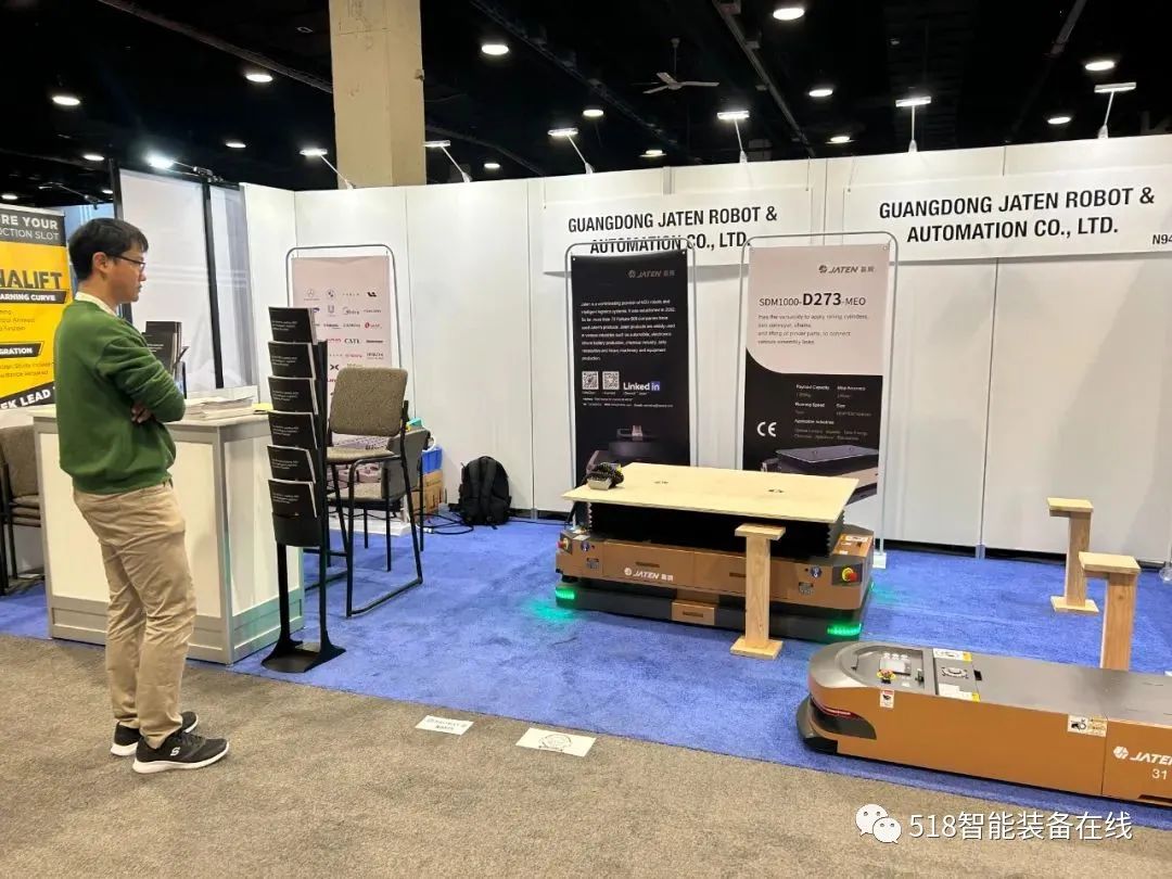 在PROMAT上,嘉腾机器人集中展示了用于新能源行业的高精度AMR。嘉腾参展团队表示,尽管有来自全世界各地数十家AMR参展商,但嘉腾展示的产品独具匠心。