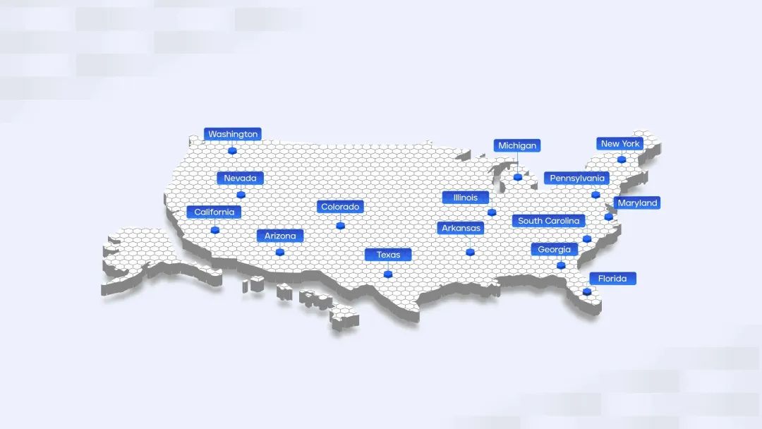 本土化服务优势:安歌科技Enotek始终将本土化服务视为重要策略。以美国为例,安歌科技持续在美国市场建立和完善供应链、生态圈以及售后服务网络,业务遍布全美15个州,熟悉各州法律法规,为出海企业或在地客户项目顺利落地夯实基础,也确保了具有提供及时、高效、专业售后服务的能力。