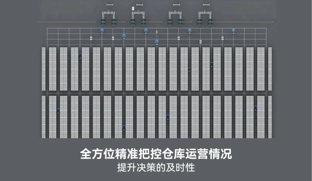 HaiQ智慧仓储平台对接客户业务系统,全盘掌握零部件的出、入、盘、理业务,通过AI算法实现机器人任务分配和路径选择的最优解,实现全方位精准把控仓库运营情况,提升决策的及时性。