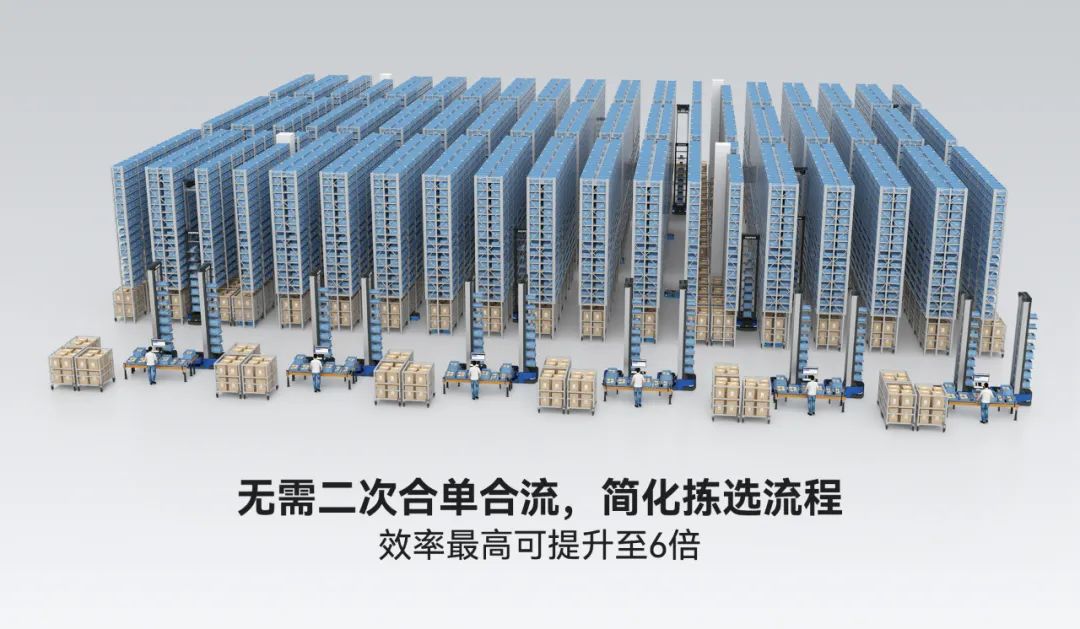 ACR兼容标准箱规零件的拣选,AMR兼容不规则大件的搬运,两种机器人应对不同大小的零部件,做到优势互补,且出库无需额外的合单合流工作,工人只需要在HaiStation工作站前,拣选ACR和AMR送来的零部件,即可在一个工作站完成标准与非标准物料的出库,最高可提升工人6倍工作效率。