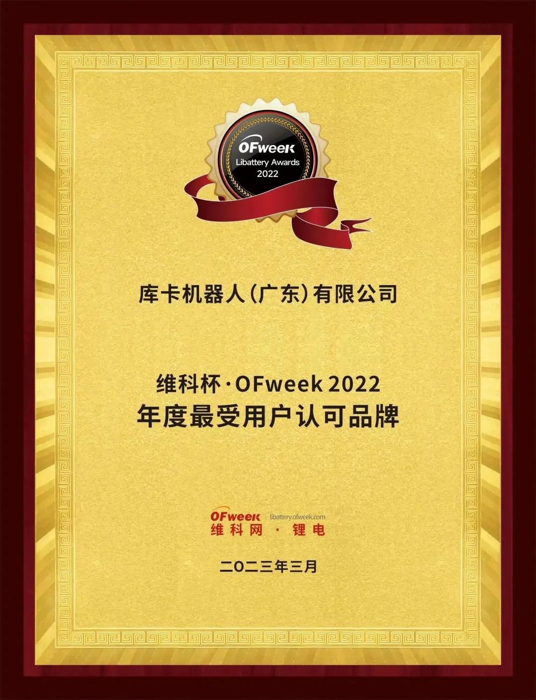 KUKA AMR凭借强大的技术创新能力、优质可靠的产品、一体化系统解决方案、全球化服务能力及知名百年工业品牌沉淀,受到评委组的一致认可,荣获“维科杯·OFweek 2022年度最受用户认可品牌”。