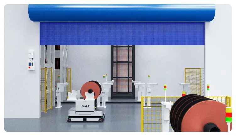 随着对锂电行业的深入探索,极智嘉意识到单是机器人与软件系统,无法完整覆盖客户业务场景。机器人搬运物料过程中,还需要与机台、卷帘门、风淋门等对接交互,线边物料缓存等需求。