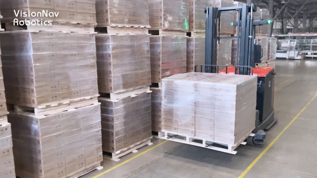 提升库位空间利用率:无人叉车叉取成品垛入库时,基于VNP20无人叉车高精度感知和定位方式,以及伺服控制技术,实现三层成品垛精准堆叠,提升客户库位存储空间利用率。
