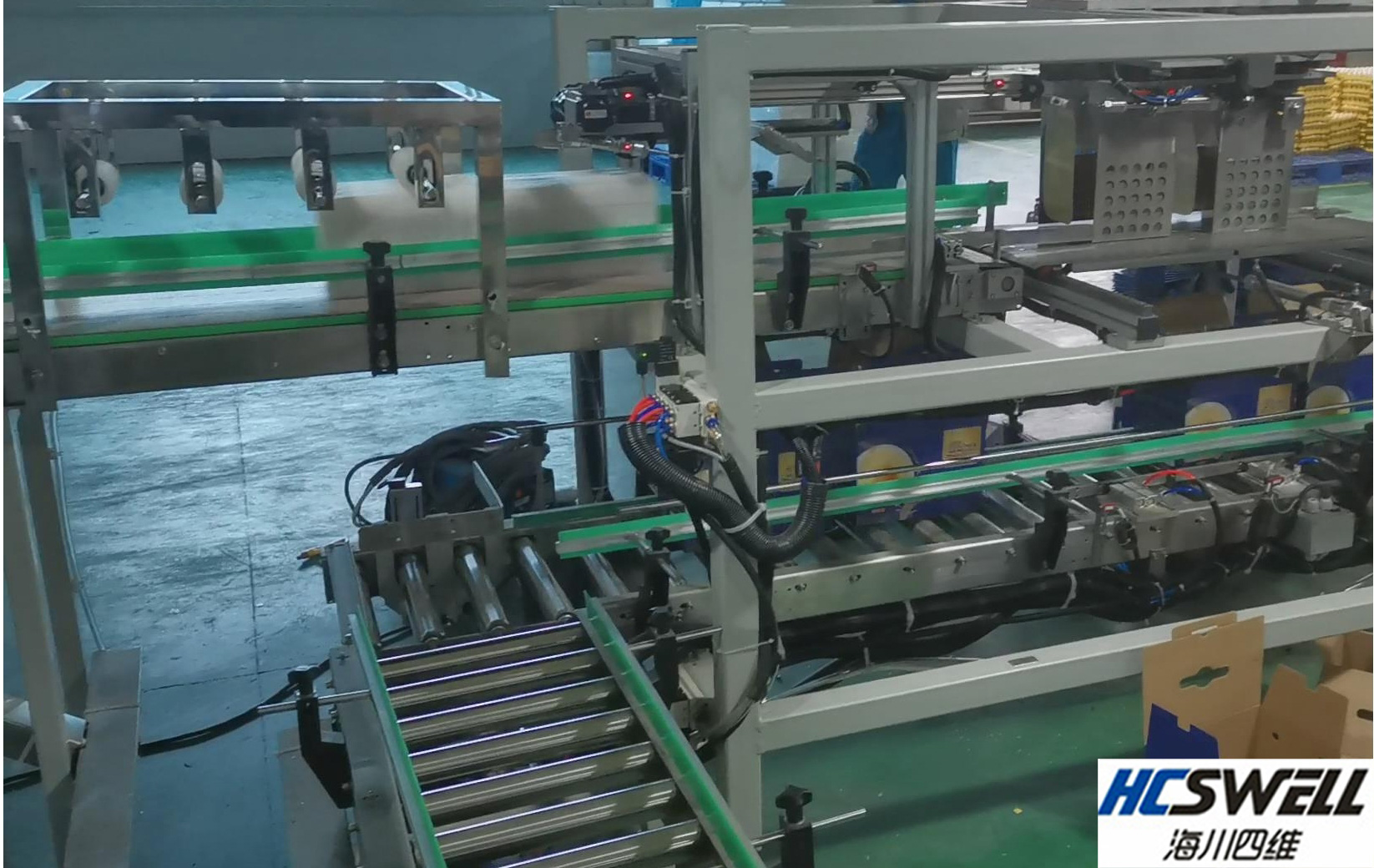 首先,输送系统会把鸡蛋从生产线上运输到自动装盒机。在传输过程中,鸡蛋会经过一个分类系统,这个系统可以根据鸡蛋的大小和形状进行分类,从而确保每个蛋都被正确地处理。分类后,鸡蛋会进入缓冲区,等待下一步的处理。