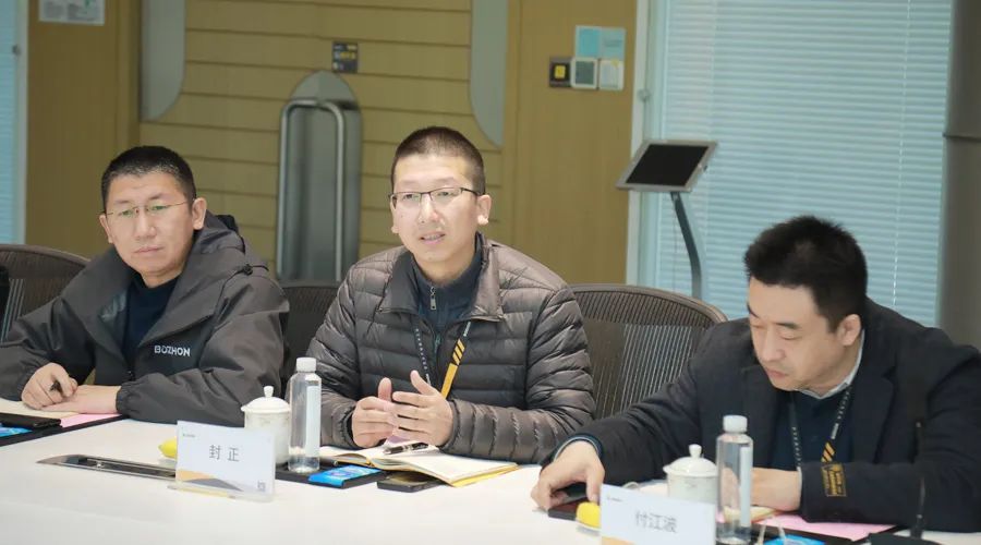 参观结束后,以技术创新中心核心,博众精工多个业务板块的技术研发团队参与了技术交流会议。围绕博众精工的技术需求及两位专家教授的研究领域,双方分别展示了相关的研究资料及部分硬件材料,并分别对技术难点进行了重点阐述及深入交流。