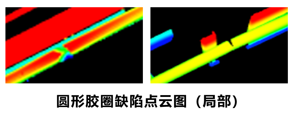 MV-DP2060-01H + VM 3D算法平台,单台相机倾斜45°架设,径向扫描两次,内径和外径分别成像(圆形胶圈)