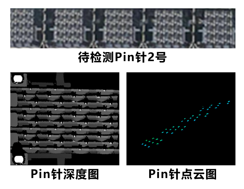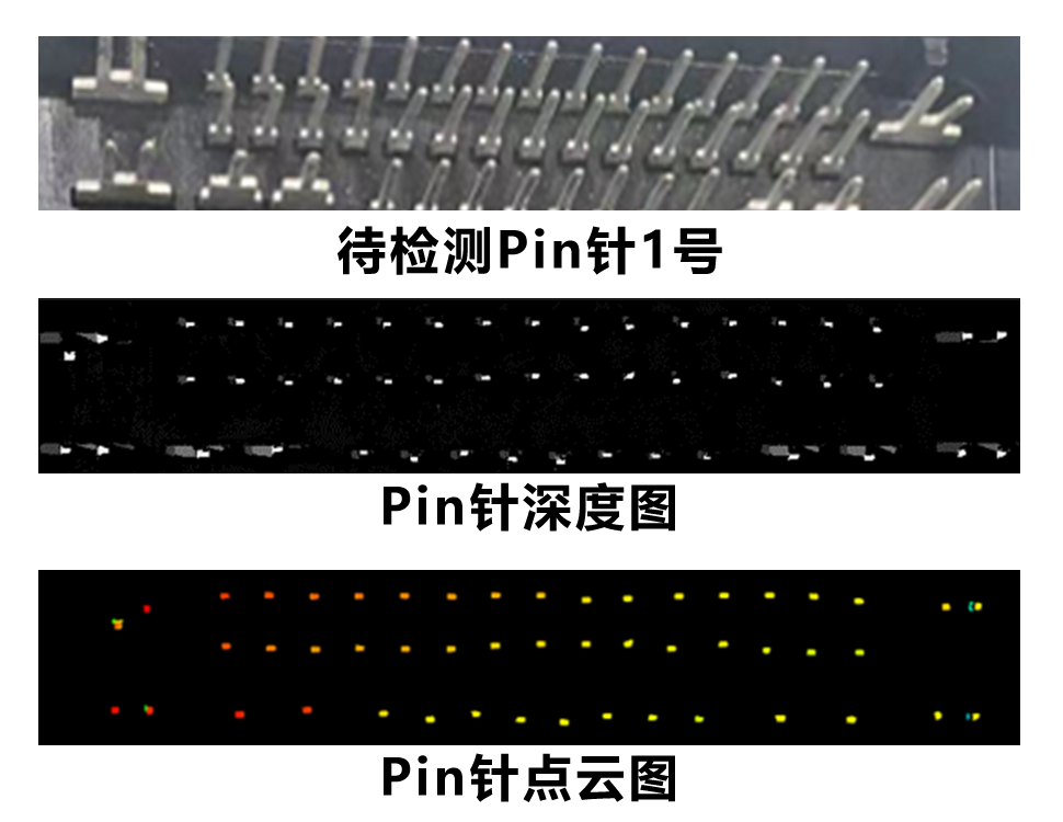 Pin针针尖细,成像难,精度要求;针尖反光,点云上方存在噪点,干扰算法处理;传统算法批量处理插针缺陷耗时长,流程繁琐