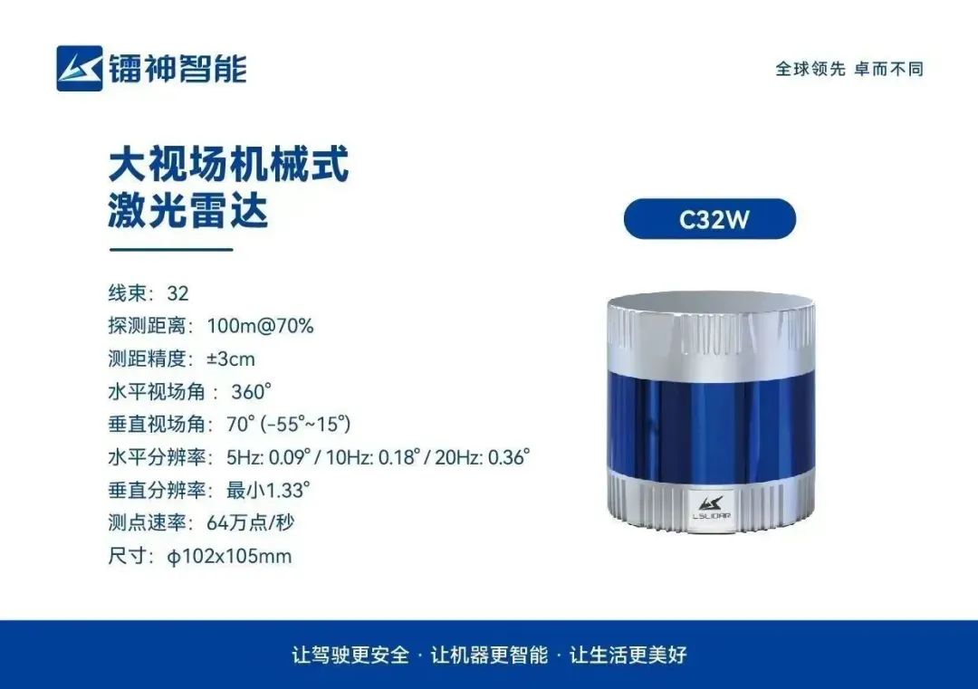2023年3月,镭神智能正式推出了低速无人驾驶的专业补盲激光雷达——“CH32R超广角补盲激光雷达”与“C32W大视场机械式激光雷达”,一经推出便受到了业内广泛关注。