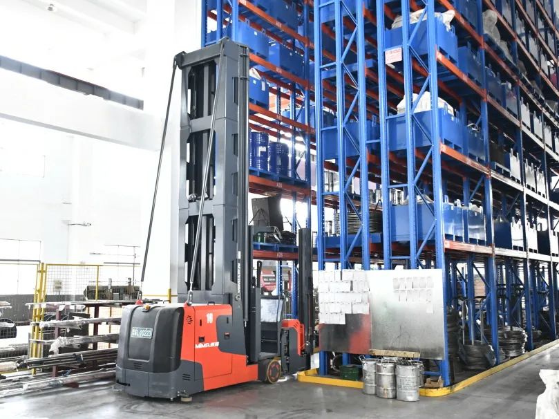 强力增效:工厂仓储和生产在同一区域,客户需求高性能作业叉车,可以在狭窄的通道中操纵货物,实现高效的运输和取货,减轻工人劳动强度,提高工作效率。