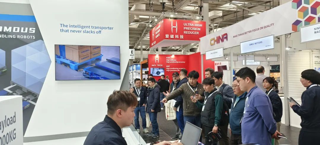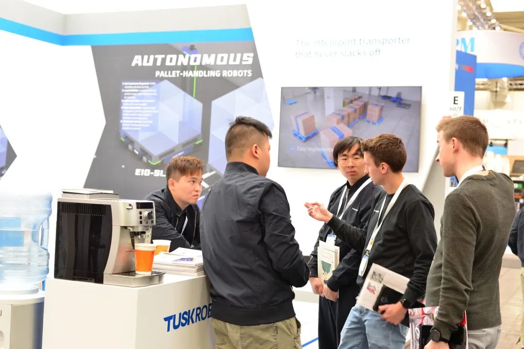 虽然此次是塔斯克机器人首次亮相汉诺威工博会,但展台(展位号:6馆,E60/7)从开展首日,便引起广泛关注。塔斯克APR托盘机器人家族凭借独特的机械结构设计、符合国际工业极简设计美学的外观,成为展馆的“明星”展品,受到了现场观众的欢迎。来自全球各地的参展观众争相与塔斯克机器人现场工作人员了解产品、咨询方案、互换名片,进行深度地对接交流。