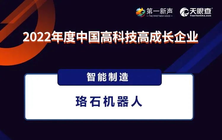 “第一新声”联合“天眼查”共同发布“数字中国”系列之2022年度中国高科技高成长企业系列榜单评选结果,珞石机器人凭借过硬的技术实力、产品能力、服务能力、市场影响力荣获“智能制造高成长企业奖”。