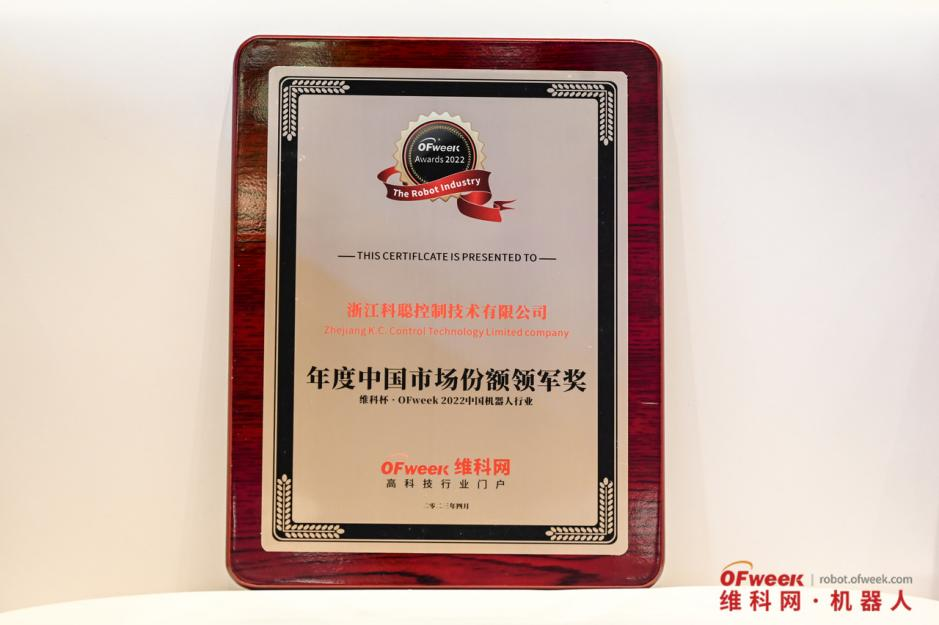 4月20日,由高科技行业门户OFweek维科网主办的“OFweek 2023(第十二届)中国机器人产业大会”在深圳隆重举办。大会同步公布“维科杯·2022中国机器人行业年度评选”获奖名单,凭借先进的机器人控制器产品和解决方案,浙江科聪控制技术有限公司获得了广泛的市场认可,荣获“维科杯·OFweek 2022中国机器人行业年度中国市场份额领军奖”。